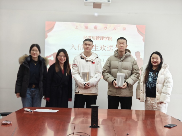 会议期间,学院领导为入伍学生颁发了纪念品,并合影留念。